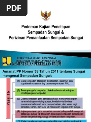 Peran serta masyarakat dan dunia usaha. Peraturan Menteri Pekerjaan Umum dan Perumah. Peraturan Pemerintah Republik Indonesia Nomor 38 Tahun 2011 Tentang Sungai2.