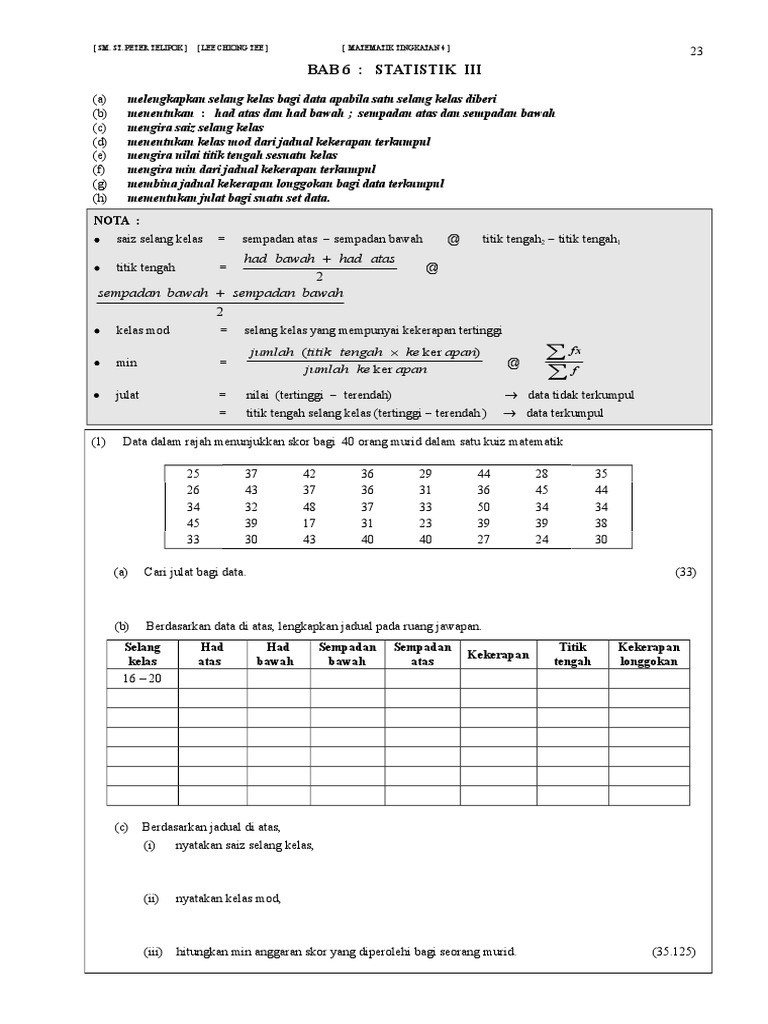 Contoh Soalan Statistik Matematik Tambahan Tingkatan 4 V Soalan